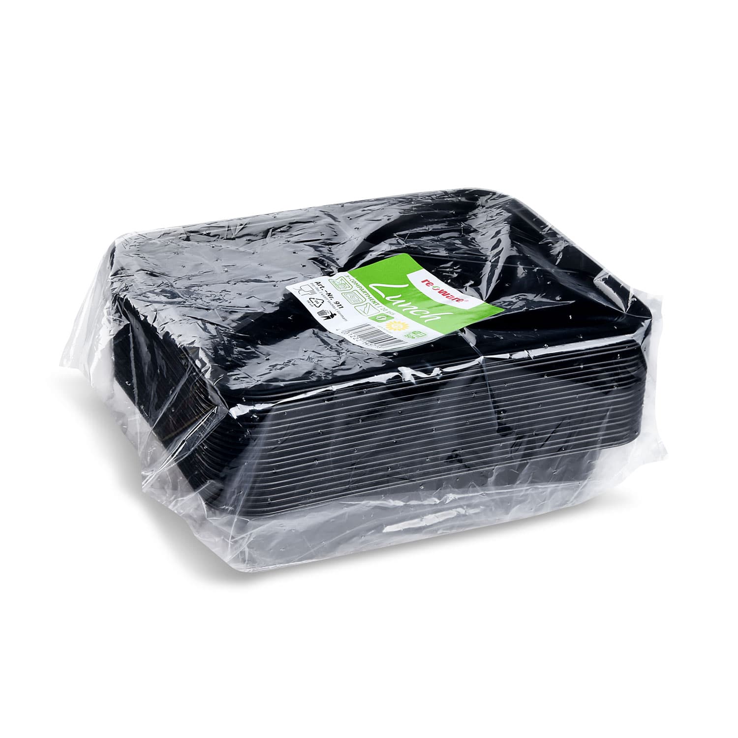 Menüschale (PP) Reware Lunch wiederverwendbar 3-geteilt schwarz 227 x 178 x 49 mm