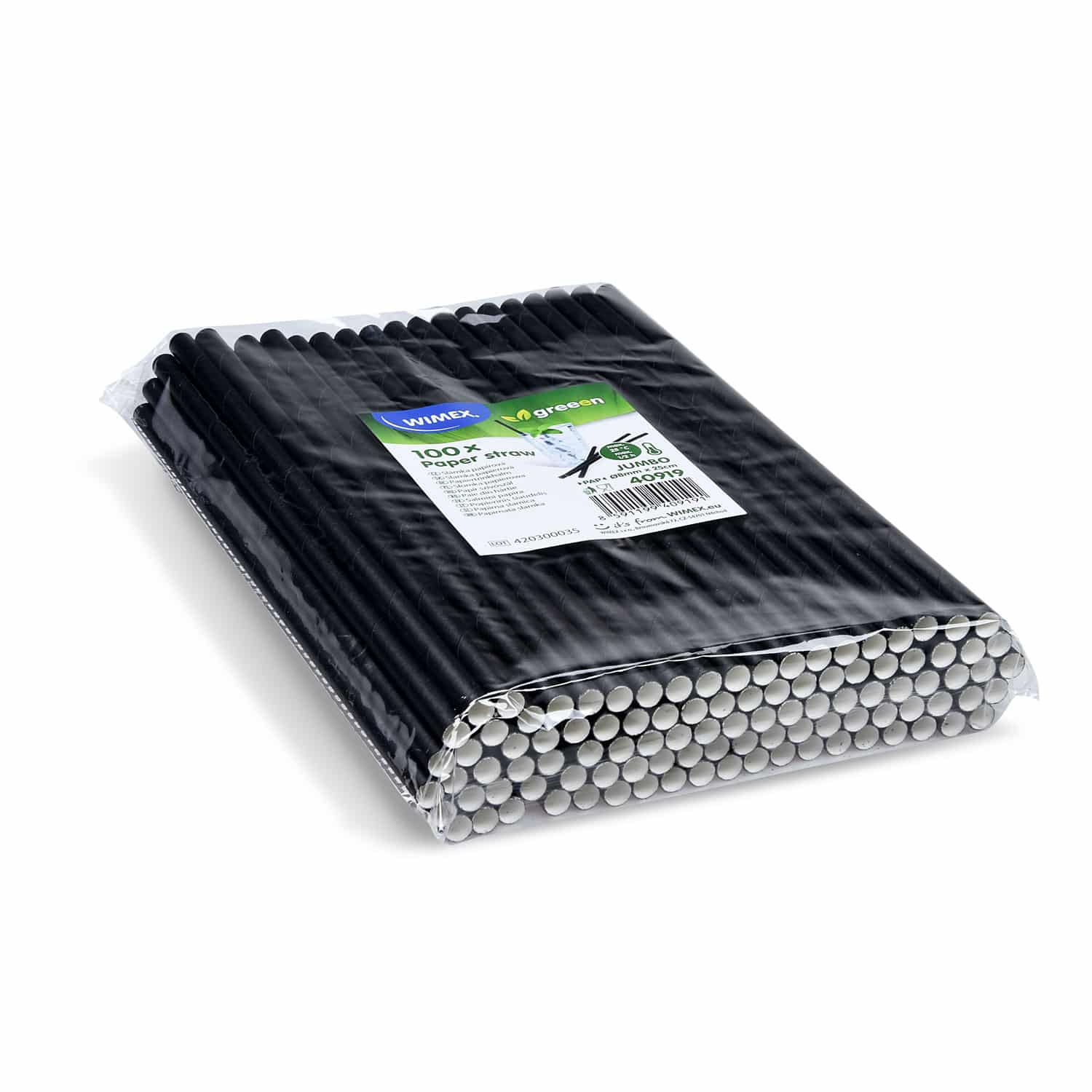 Papiertrinkhalm schwarz `JUMBO` Ø8mm x 25cm